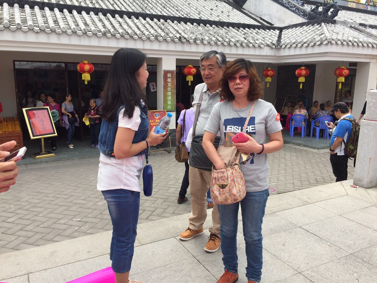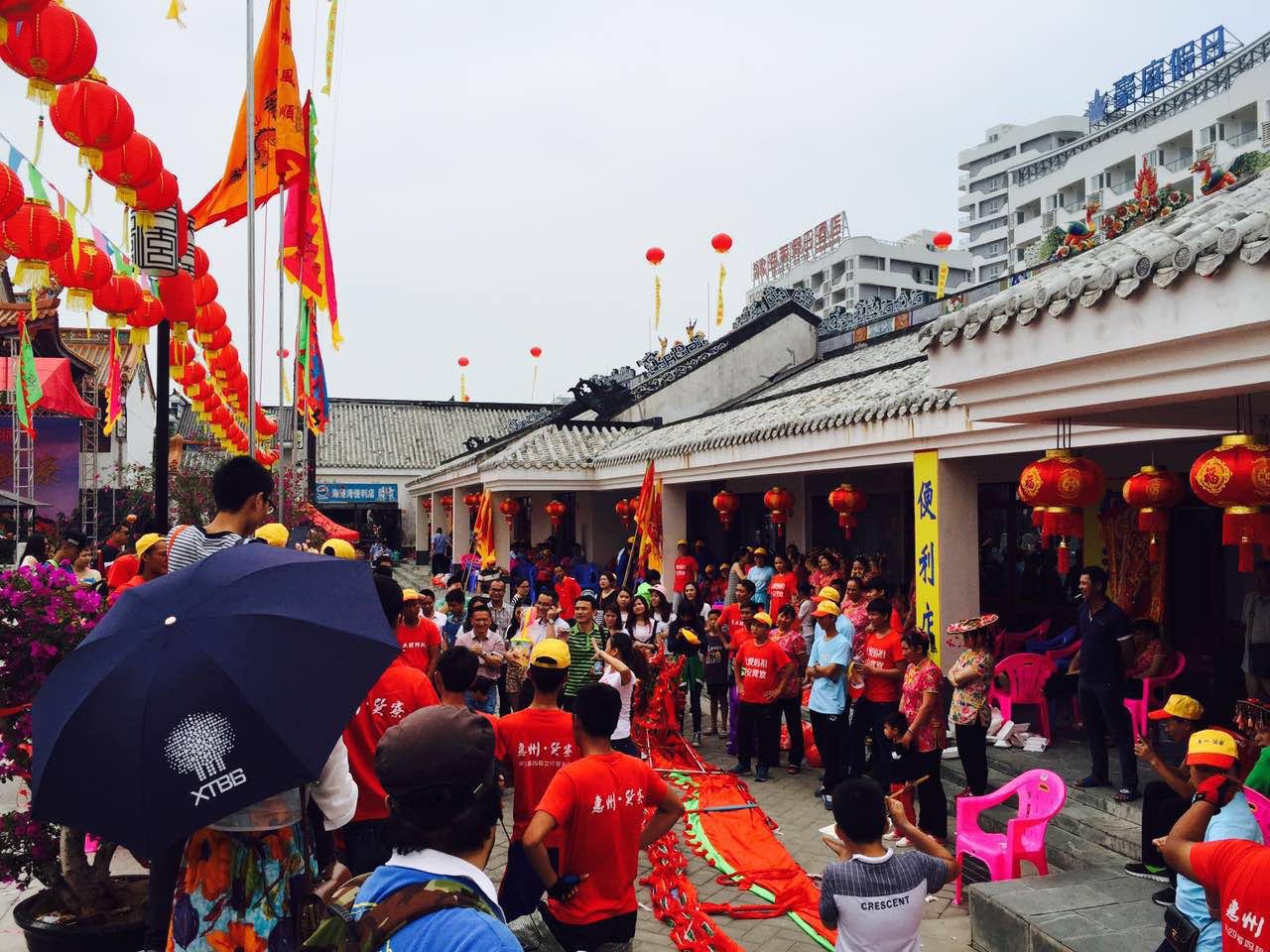 在經(jīng)過了四小時的車程后,于中午時分到達了素有中國的馬爾代夫之稱的惠東巽寮灣。一行人一下車便開始了第一項拓展挑戰(zhàn)——人員分成三組,分別找到天后宮的正門及概念銷售手中的礦泉水,且銷售出去后水還在手中。巽寮灣的景點之一的天后宮在這天正好遇上一年一度的媽祖誕辰,各地的旅游團和朝拜人士都從五湖四海聚擁而至,人山人海的場面相當(dāng)熱鬧。