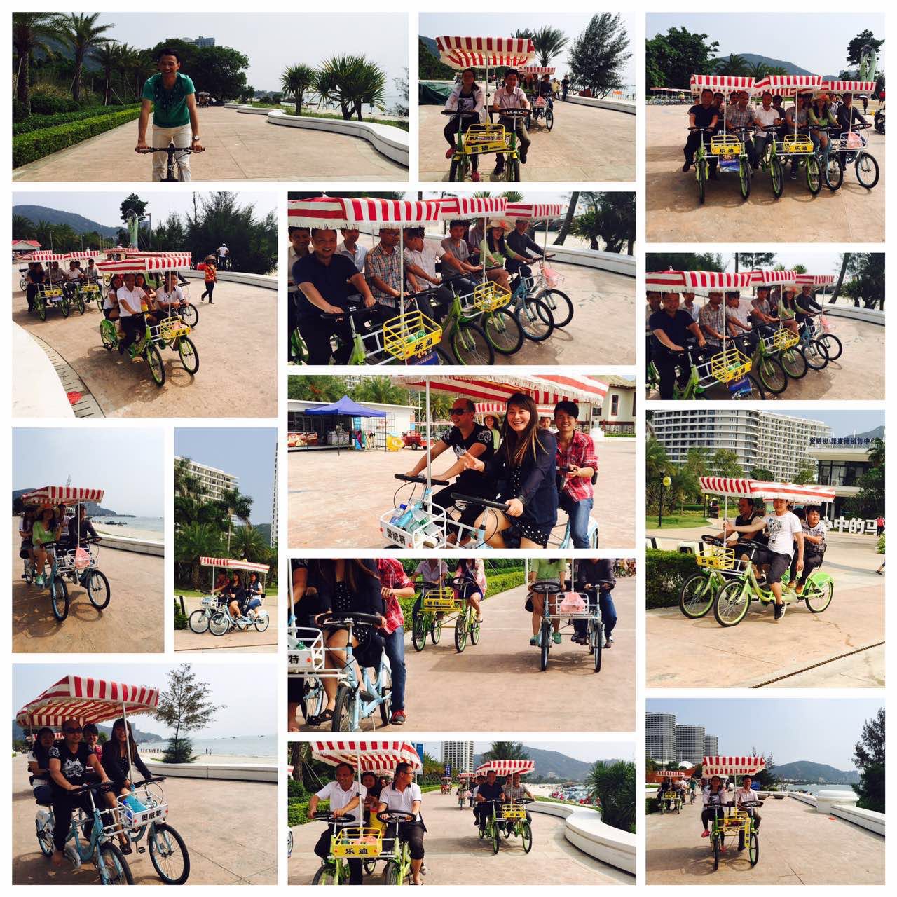 第二天一早大家便來到了素有中國式馬爾代夫之稱巽寮灣海灘邊,欣賞白沙灘,綠藍分明的海水,體驗了慢船在海中捕魚及快艇海中速度般飛越的感覺,大家都意猶未盡不舍上岸……拓展公司見我們都不愿意離開,簡單的午餐過后,組織了大家集體騎自行車環(huán)海觀光,一邊悠閑地踩著自行車,一邊吃著冰激淋,一邊吹著海風(fēng)和同事們嘻鬧,讓我們大家都開懷大笑!