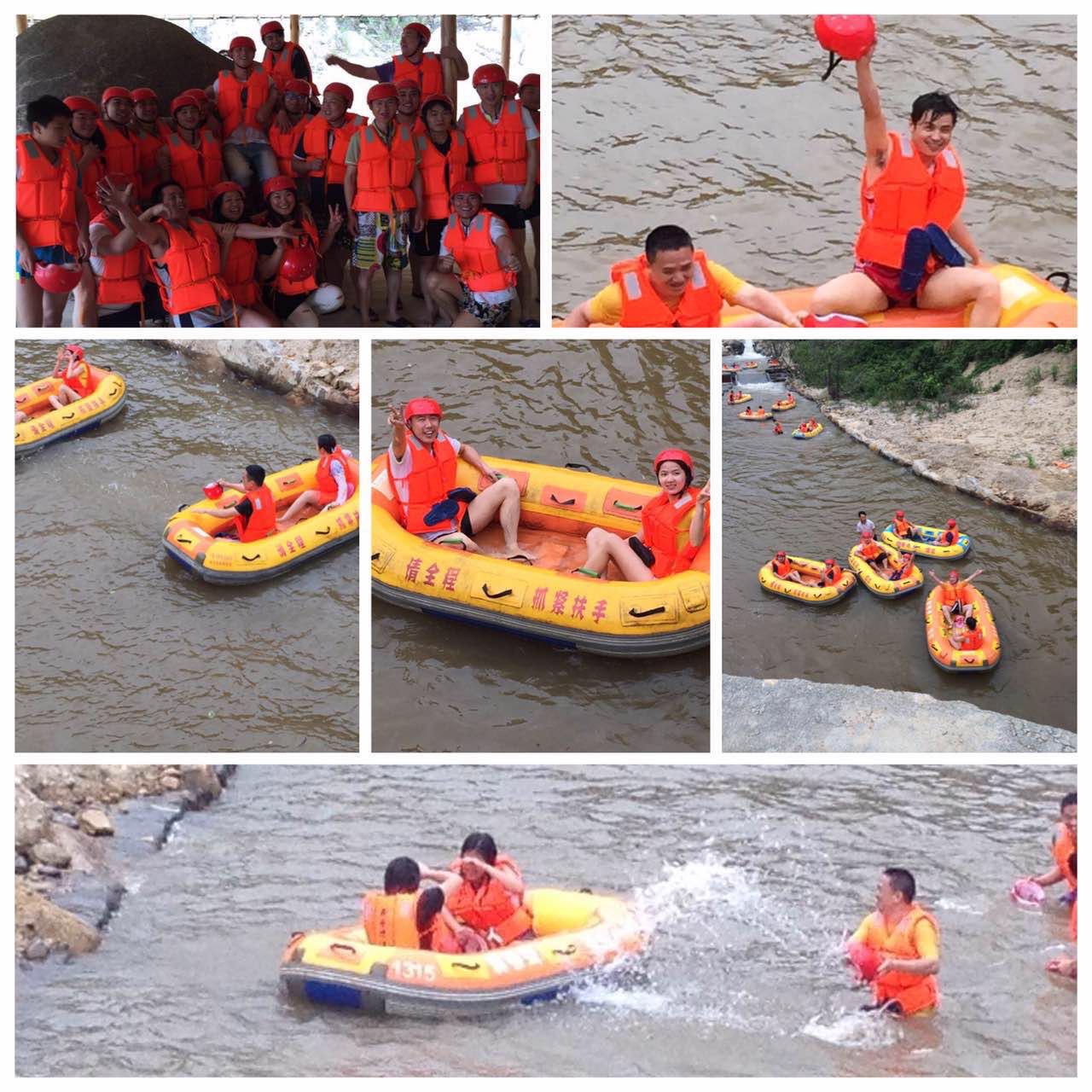 中午大家在一起享受了一番當(dāng)?shù)孛朗持螅?qū)車來到了巽寮灣龍騰峽漂流,開始了我們的第二項挑戰(zhàn)。盡情享受漂流給心靈帶來歡愉與刺激的同時,享受大自然的鬼斧神工之妙!平時一向溫和的李總和林總,也童真了回,孩子氣地直接從漂流艇上跳入水中,和大伙一起玩起了潑水大戰(zhàn),更加拉進了彼此間的距離感。