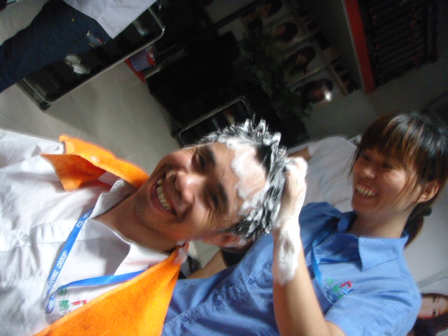 第一次享受同事的洗頭服務(wù)!施與受,都開心!